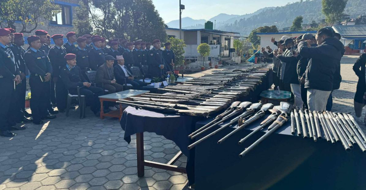 प्रहरीले लमजुङबाट सय बढी हतियार बरामद गरेको छ । डीएसपी निशान श्रीवास्तवका अनुसार विभिन्न ठाउँबाट अहिलेसम्म एक सय ७ वटा भरुवा बन्दुक बरामद गरिएको छ । २२ बोर हर्नेट, १२