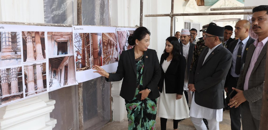 काठमाडौँ । प्रधानमन्त्री पुष्पकमल दाहाल प्रचण्ड ले भूकम्पबाट क्षतिग्रस्त बनेको सिंहदरबारको पश्चिमतर्फको भवनको निरीक्षण गरेका छन् । बिहीबार दिउँसो प्रधानमन्त्री प्रचण्डले निर्माणमा संलग्न कम्पनीसँग छलफल गर्दै पुनर्निर्माण सम्पन्न पश्चात देखिने