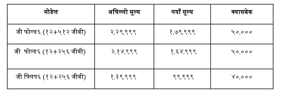 ग्राहकहरूले ग्यालेक्सी जेड फोल्ड ६ र ग्यालेक्सी जेड फ्लिप ६ किन्ने बेलामा ग्यालेक्सी A को क्षमता पत्ता लगाउनुको साथै ५०,००० सम्मको क्यासबेक पाउन सक्छन् ।